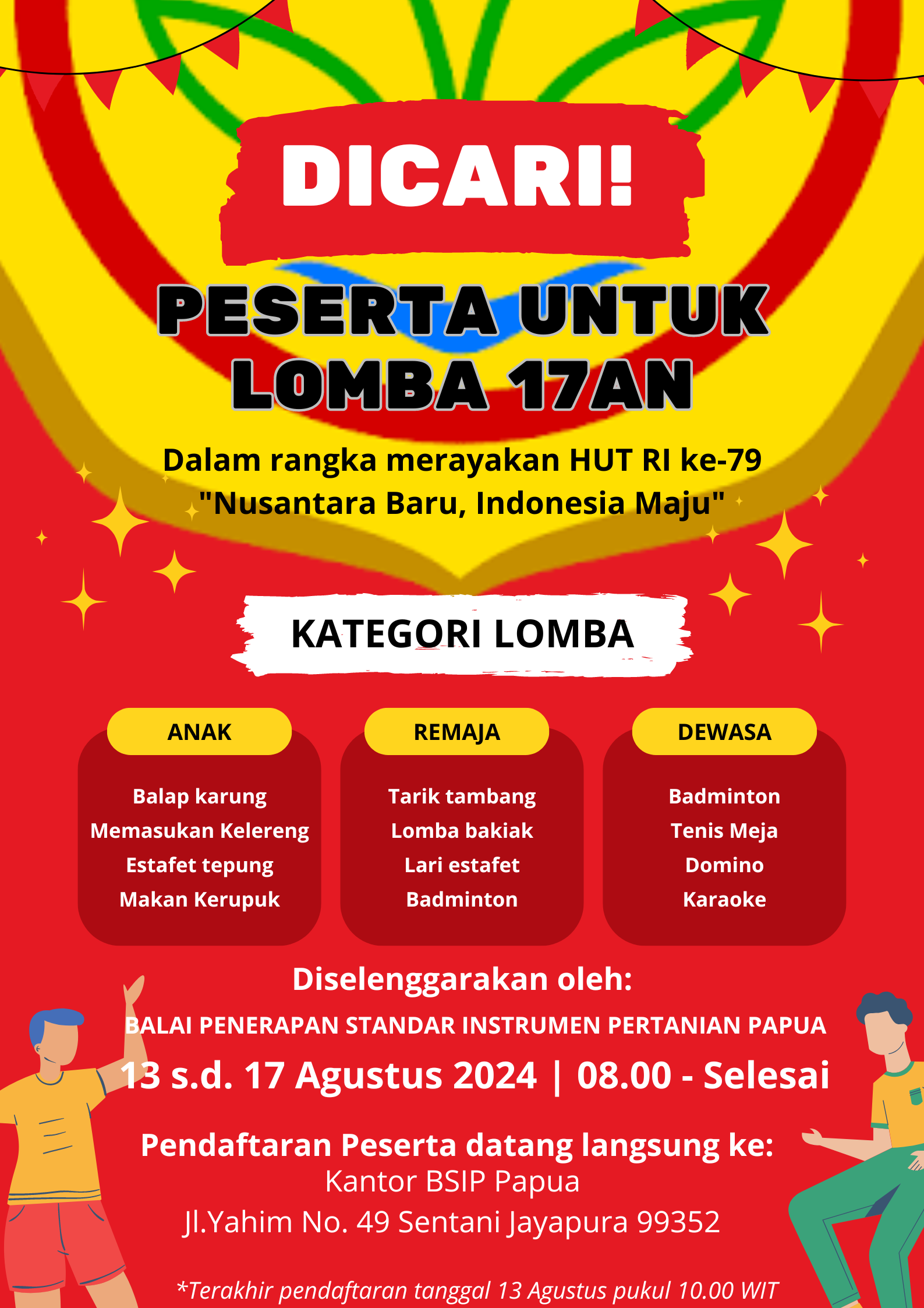 | 56 | 13 Aug 2024 | Lomba Agustusan 2024 | Kantor BSIP Papua Sentani |