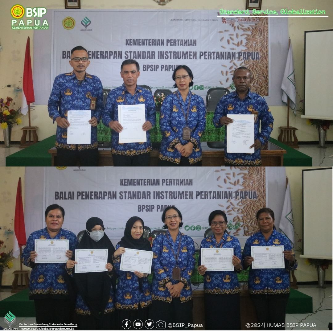 | 65 | 16 Nov 2023 | FGD Identifikasi Standar Instrumen Pertanian Spesifik Lokasi | Kantor BPSIP Papua | Dalam rangka menindaklanjuti kegiatan identifikasi standar instrumen pertanian spesifik lokasi khususnya tanaman pangan (padi) yang telah dilaksanakan beberapa waktu lalu dibeberapa lokasi, BSIP Papua akan melakukan Focus Discussion Group (FGD) yang akan dilaksanakan di Aula BSIP Papua. Acara ini melibatkan kepala dinas provinsi & kabupaten, kepala bidang tanaman pangan dan hortikultura dan pihak terkait. |